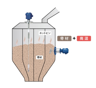 高温の骨材検出には、耐熱仕様・耐環境用パドル式レベルスイッチが使用出来ます。