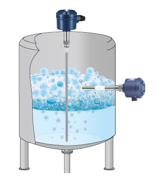 曝気槽:泡が発生する曝気槽でのレベルセンサ