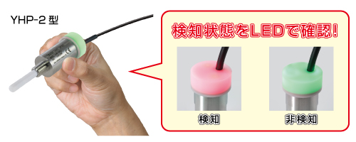 動作状態をLEDで確認できます。YHP-2型は(キャップ全体がLED表示で)検知状態が「一目」で分かります。