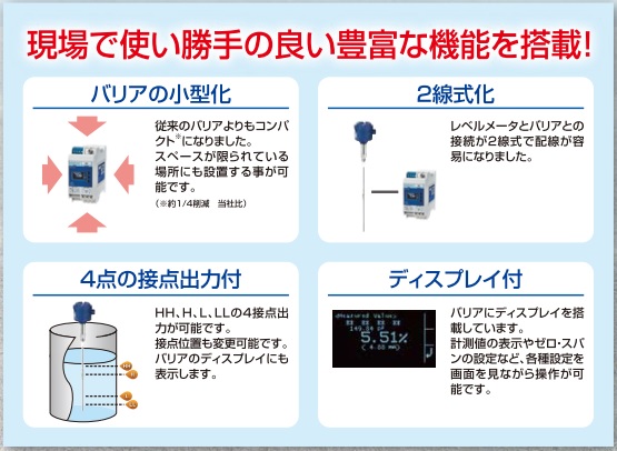 ■バリアの小型化、2線式化、4接点出力などの機能を搭載。