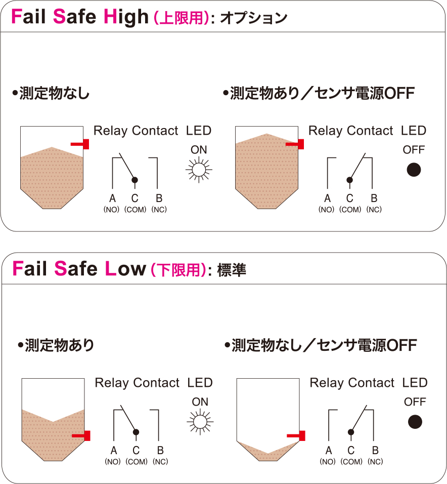 静電容量式レベルスイッチYAL型のフェイルセーフモード